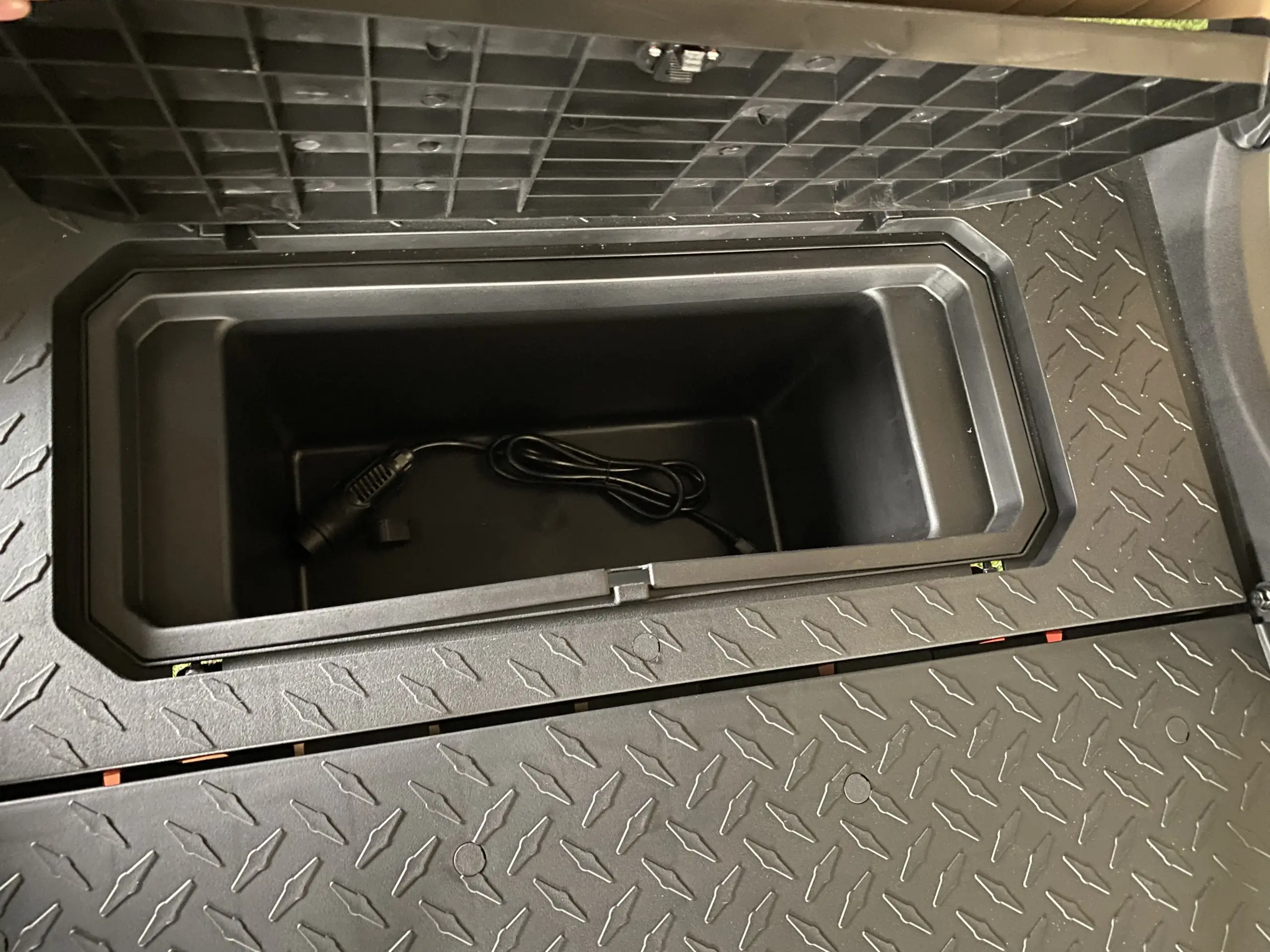 Dedicated rear golf bag storage, cooler, ball/club washer & dual sand bottles
