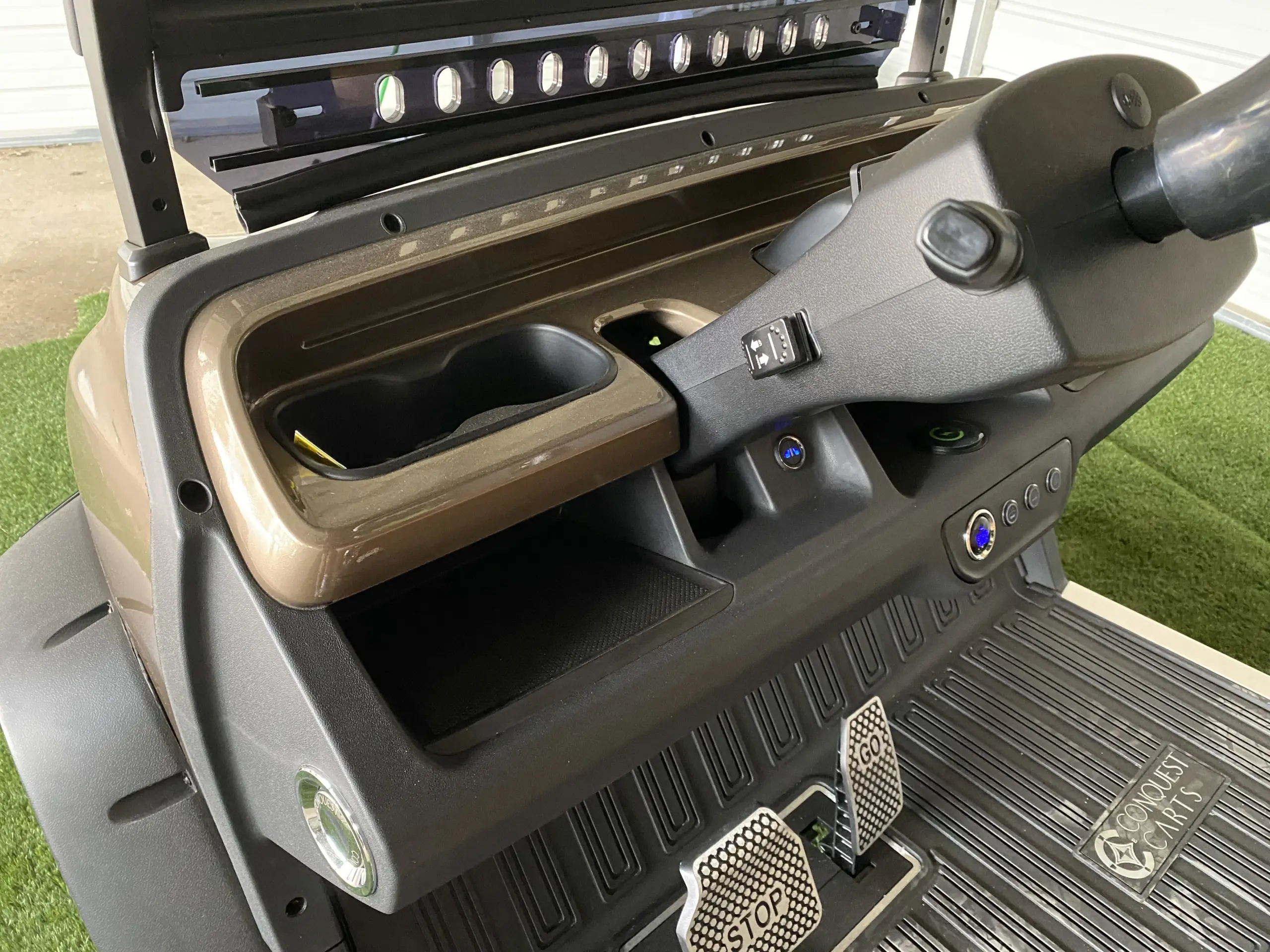 Our selection also includes advanced performance features, including powerful lithium-ion battery upgrades, digital displays, and enhanced suspension systems, catering to both casual users and those seeking top-tier functionality. Whether you’re looking for utility-focused add-ons like storage compartments and off-road tires or entertainment enhancements like Bluetooth speakers and LED lighting, Hartville Golf Carts has you covered. With our expert team guiding you through every option, your Conquest S40 Golf Cart. can be tailored to meet all your needs while reflecting your personal style.