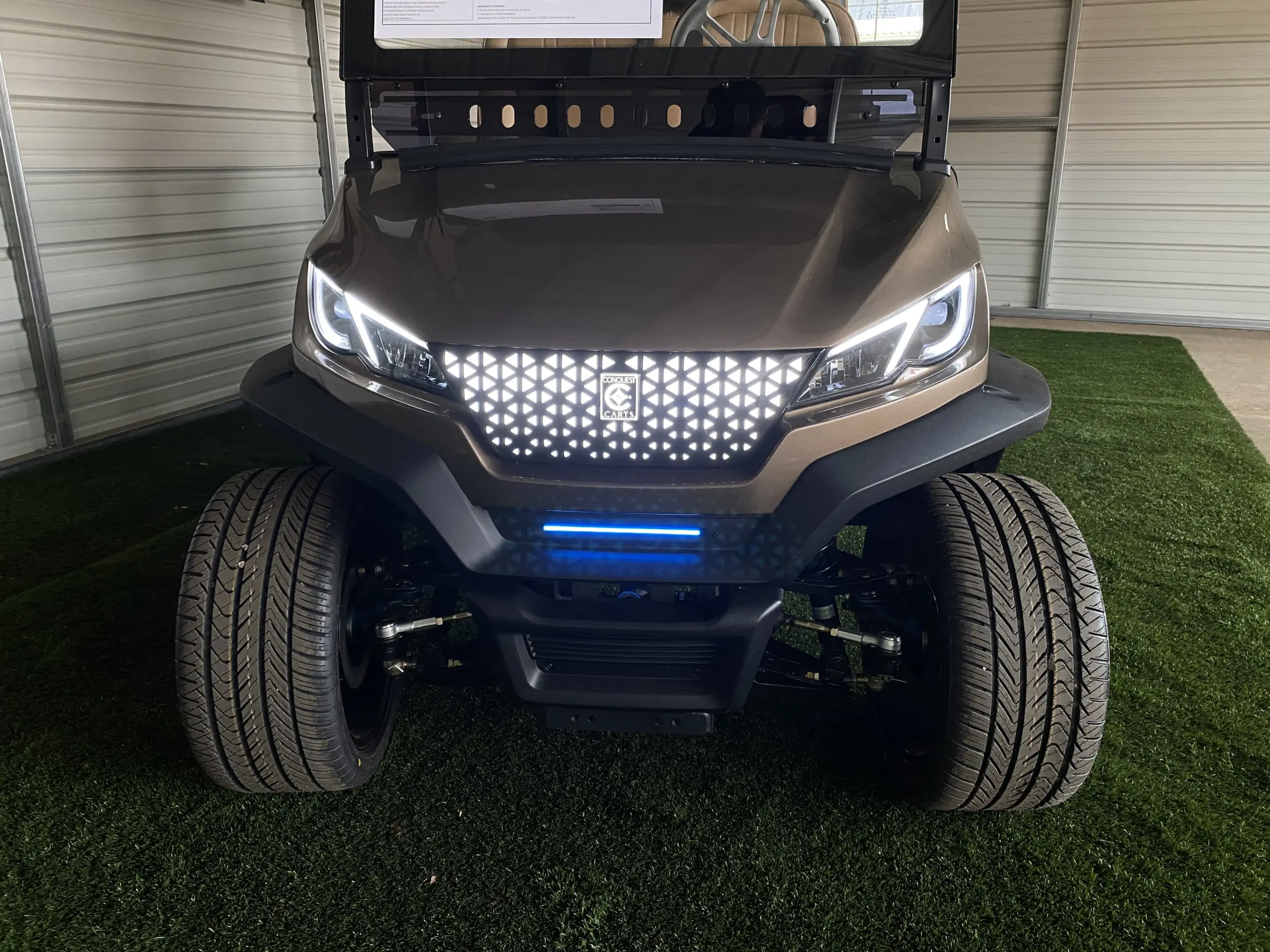 Hartville Golf Carts proudly offers an extensive range of additional options and features for Conquest S40 Golf Cart., ensuring you can find or customize the perfect cart to suit your lifestyle. From practical upgrades like extended roofs and premium seating to enhance comfort, to stylish accessories such as custom wheels, sleek body kits, and vibrant paint options, we provide endless ways to make your Conquest EV uniquely yours.