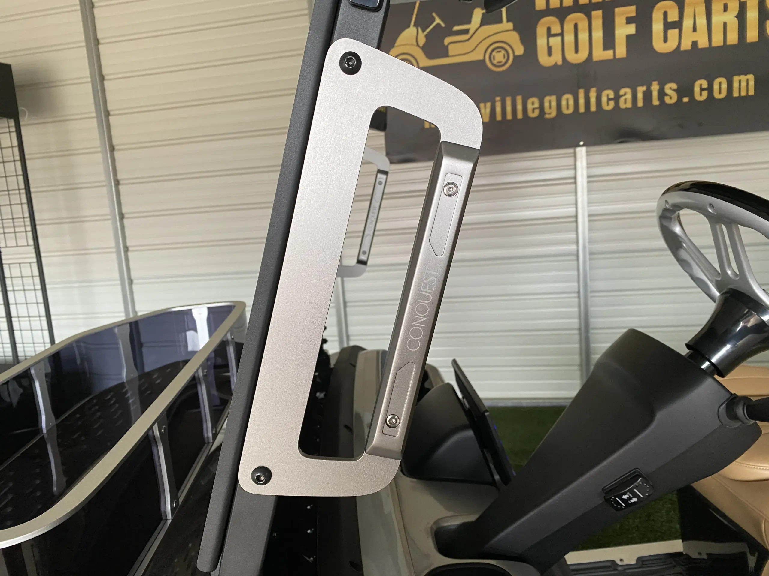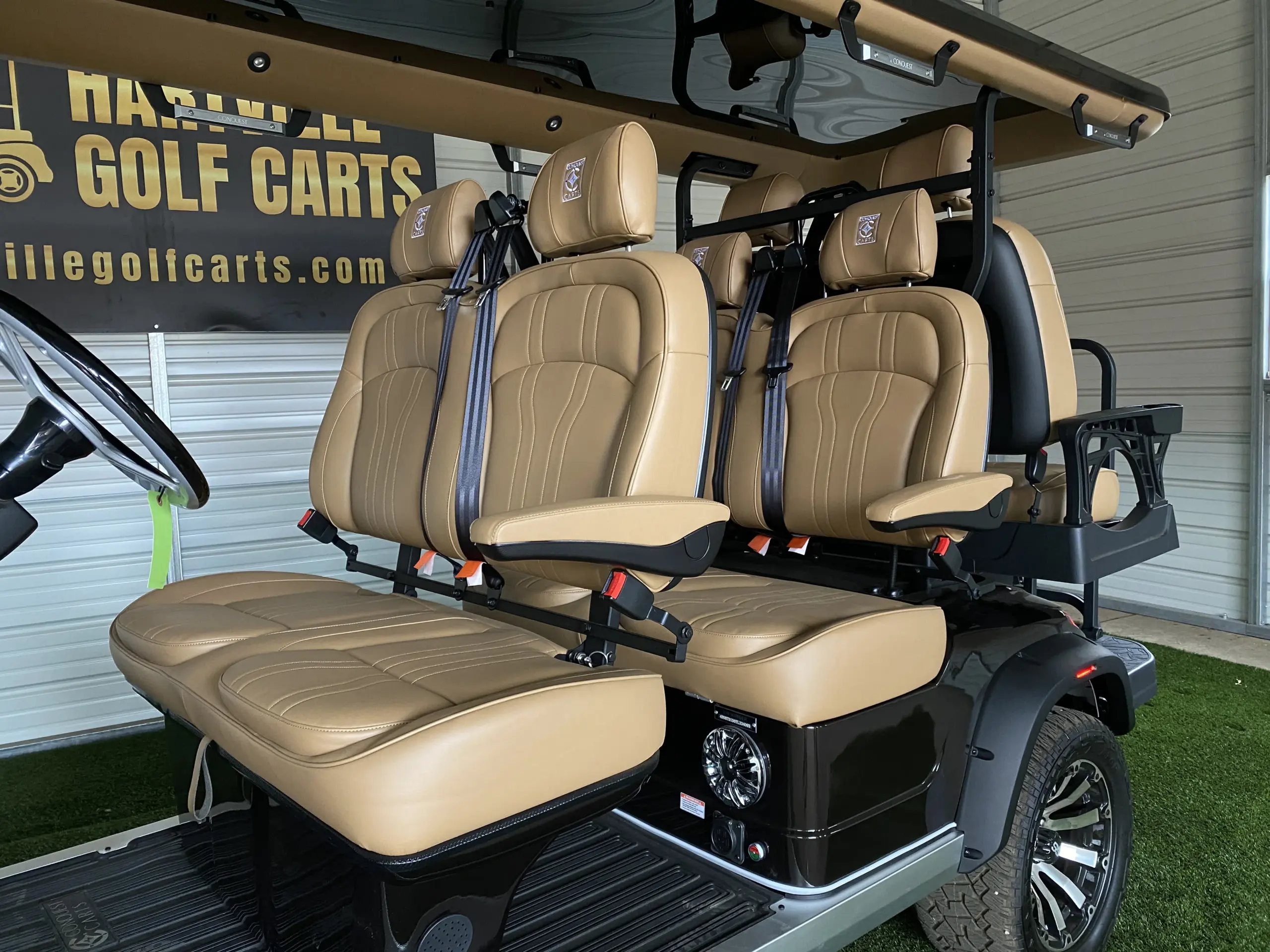 Hartville Golf Carts proudly offers an extensive range of additional options and features for Conquest EV Golf Carts, ensuring you can find or customize the perfect cart to suit your lifestyle. From practical upgrades like extended roofs and premium seating to enhance comfort, to stylish accessories such as custom wheels, sleek body kits, and vibrant paint options, we provide endless ways to make your Conquest EV uniquely yours.