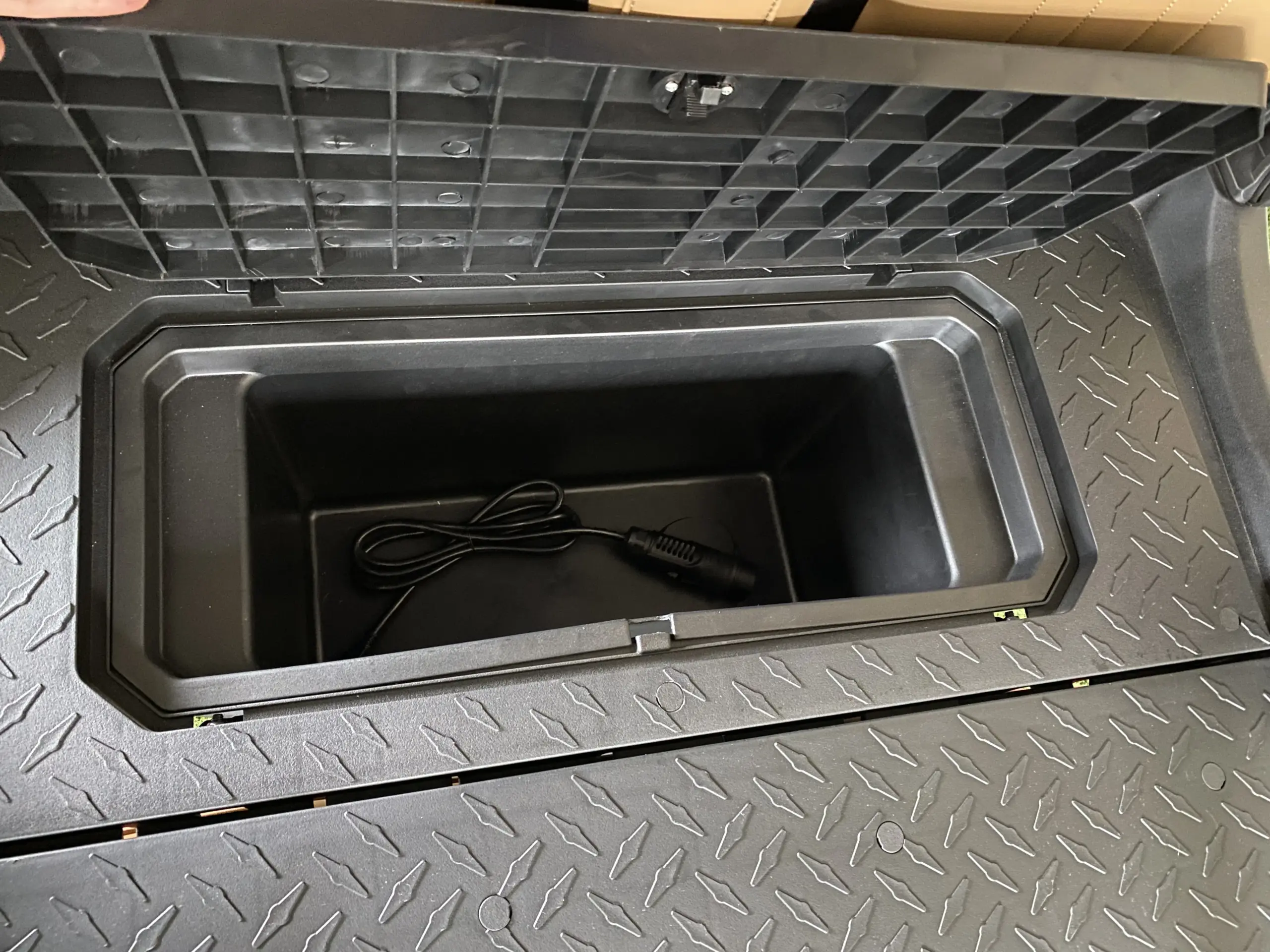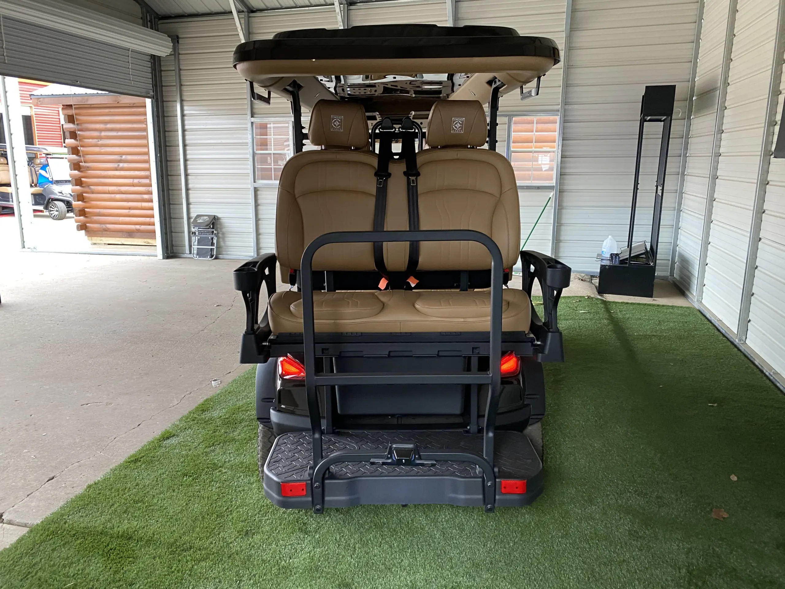 Dedicated rear golf bag storage, cooler, ball/club washer & dual sand bottles