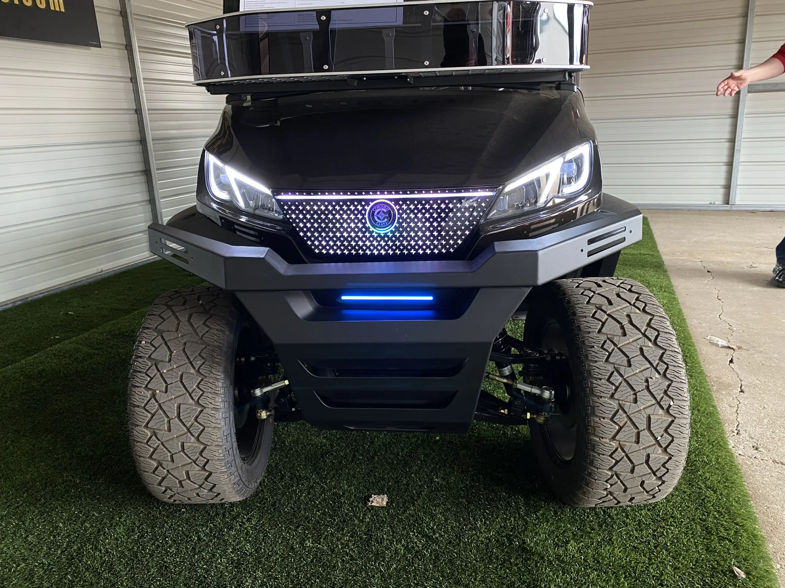 Our selection also includes advanced performance features, including powerful lithium-ion battery upgrades, digital displays, and enhanced suspension systems, catering to both casual users and those seeking top-tier functionality. Whether you’re looking for utility-focused add-ons like storage compartments and off-road tires or entertainment enhancements like Bluetooth speakers and LED lighting, Hartville Golf Carts has you covered. With our expert team guiding you through every option, your Conquest EV Golf Cart can be tailored to meet all your needs while reflecting your personal style.