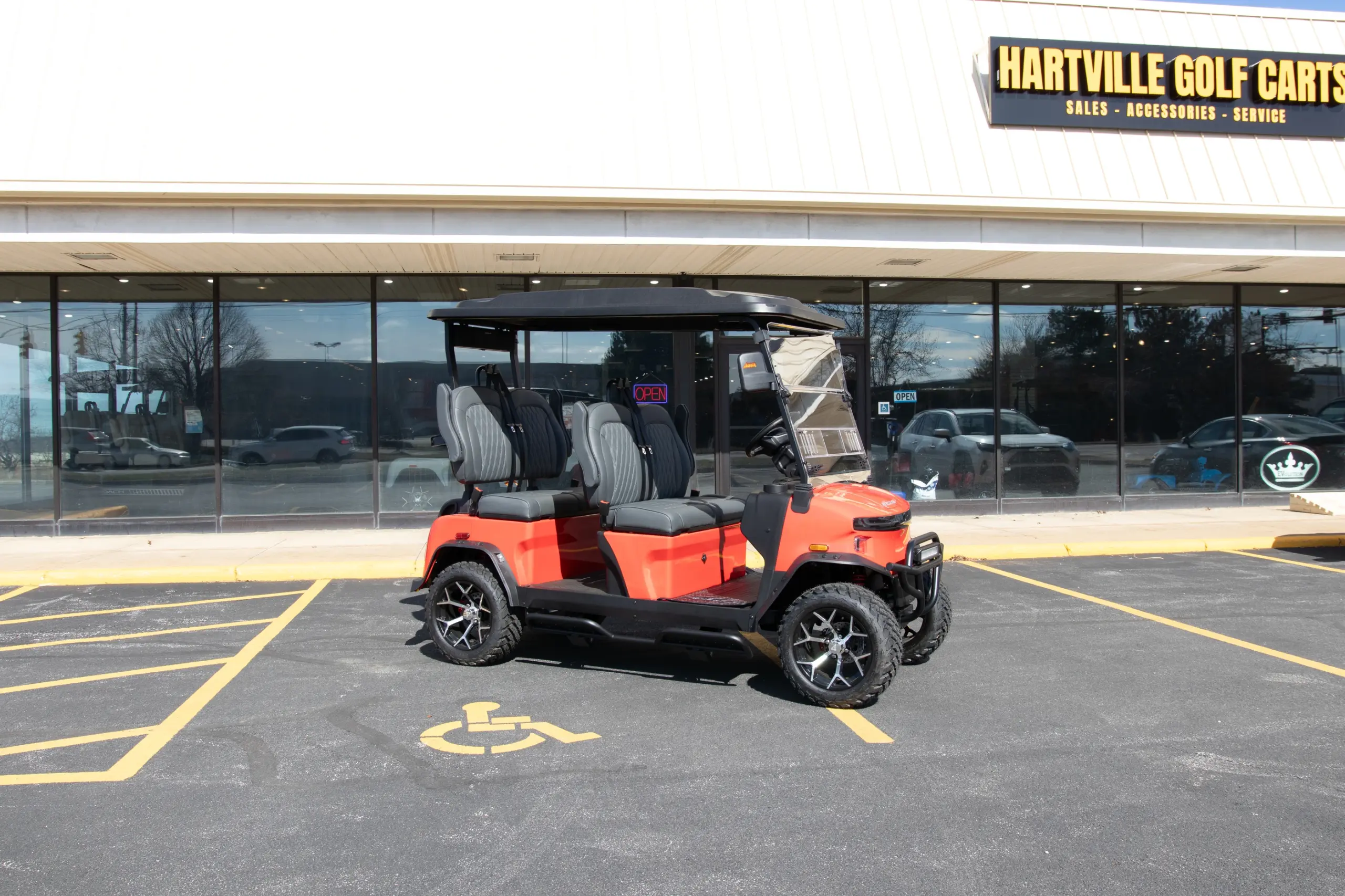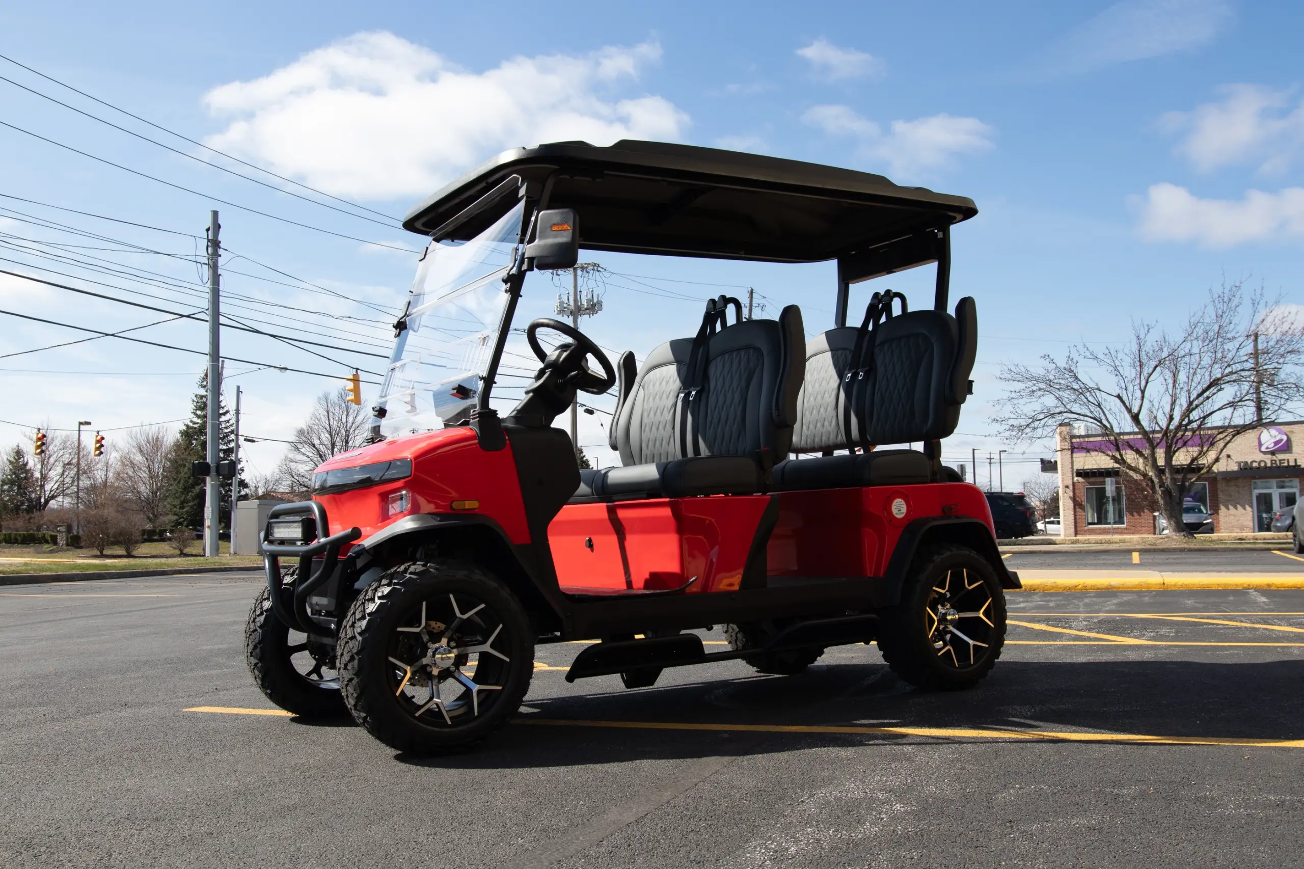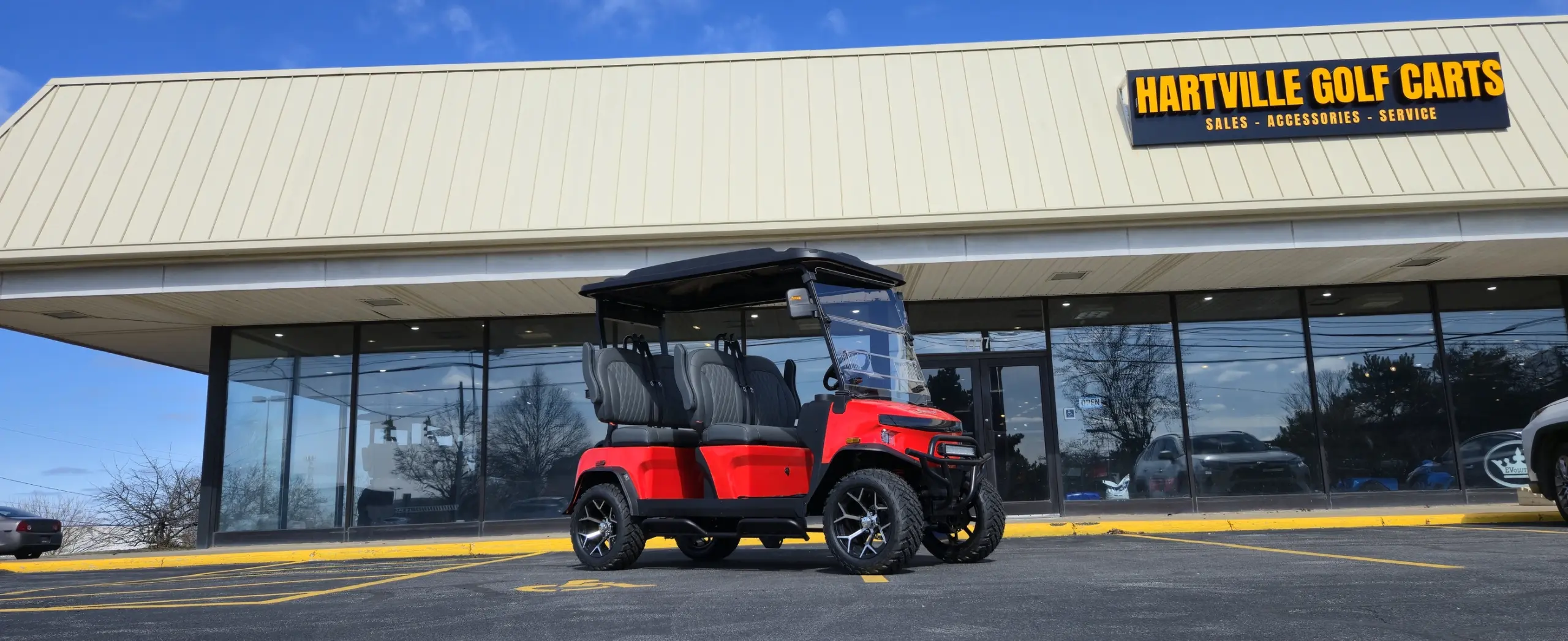 Our advertised pricing on our golf carts for sale and other products excludes applicable taxes, title and licensing, dealer setup, destination, and reconditioning and is subject to change without notice. Pricing may exclude any added parts, accessories or installation unless otherwise noted. Sale prices include all applicable offers. Not all options listed are available on pre-owned models. Contact dealer for details.