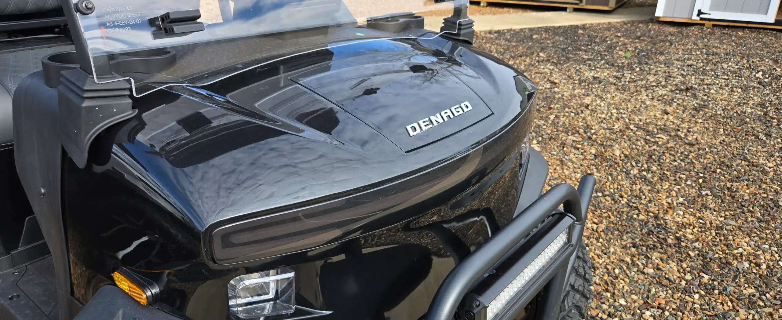 The Denago Nomad XL in sleek black delivers both style and function. Its clean design and polished details make it stand out wherever you go. This four passenger EV golf cart provides ample space for family and friends, offering a smooth and relaxing ride for everyone.