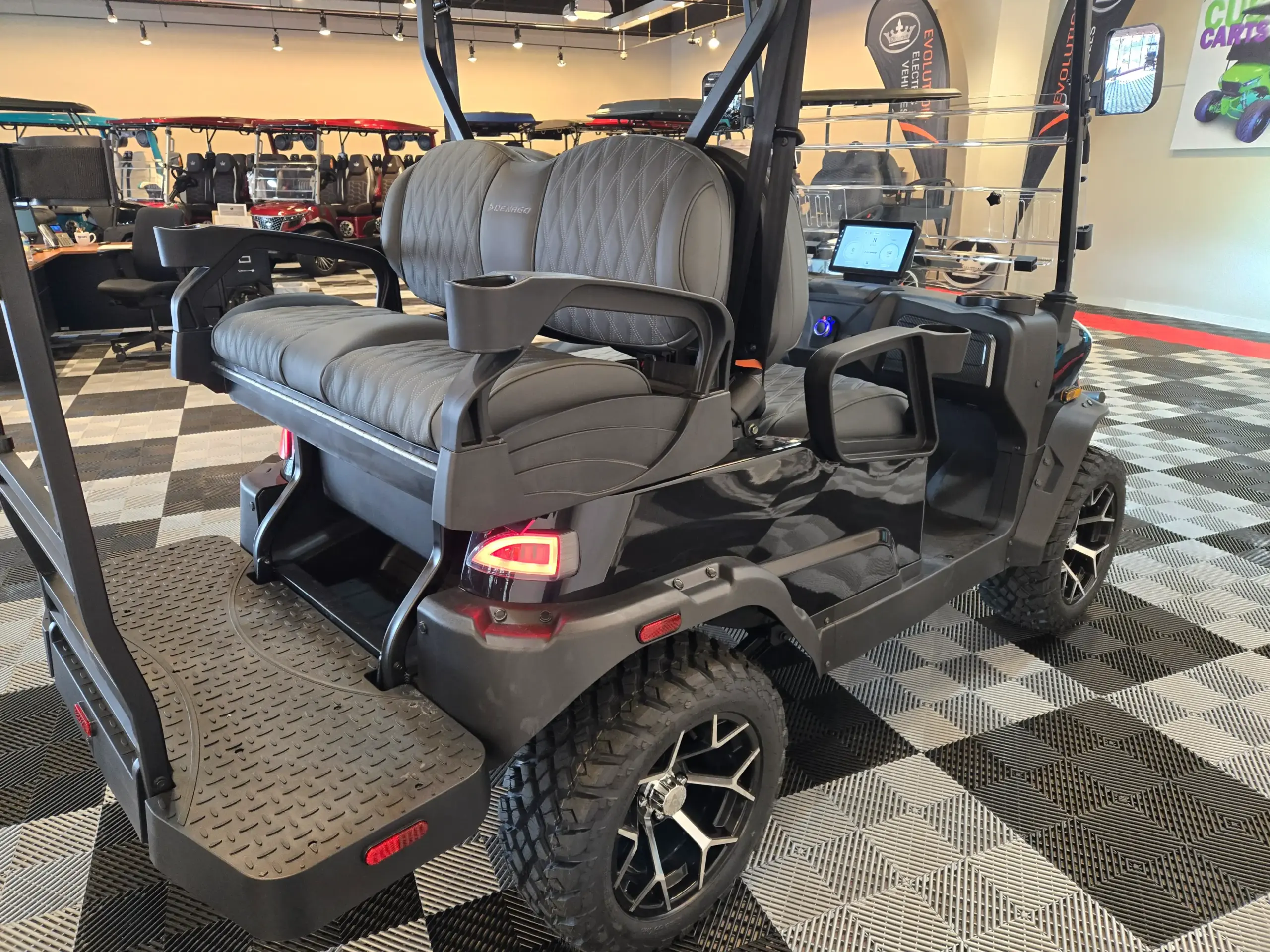 The Denago Nomad XL brings style and convenience together. With seating for four people, it’s perfect for families, golfers, or anyone who enjoys a relaxing ride. The spacious seats and ample legroom make every trip enjoyable, whether you are driving through your community or on the golf course.