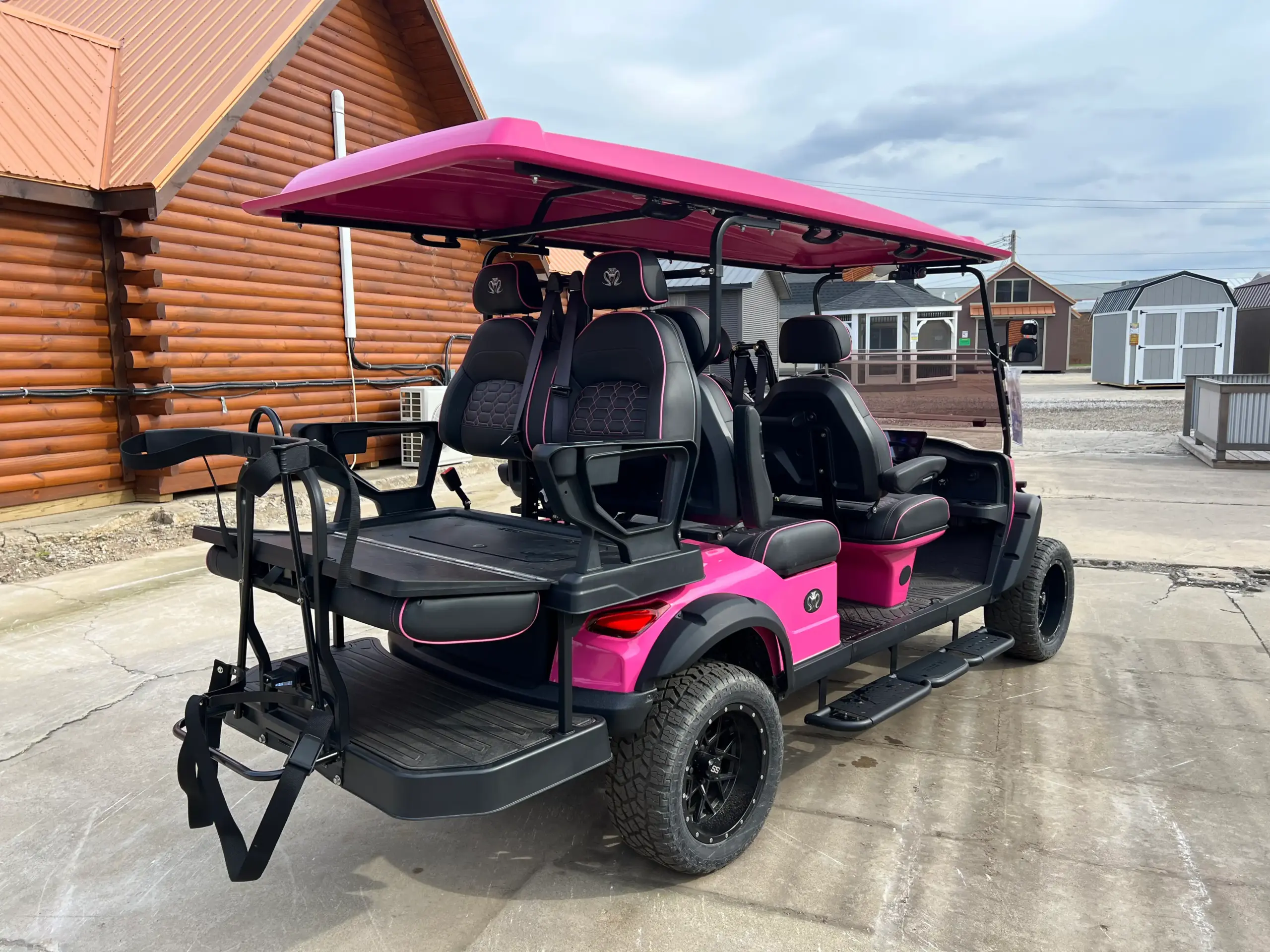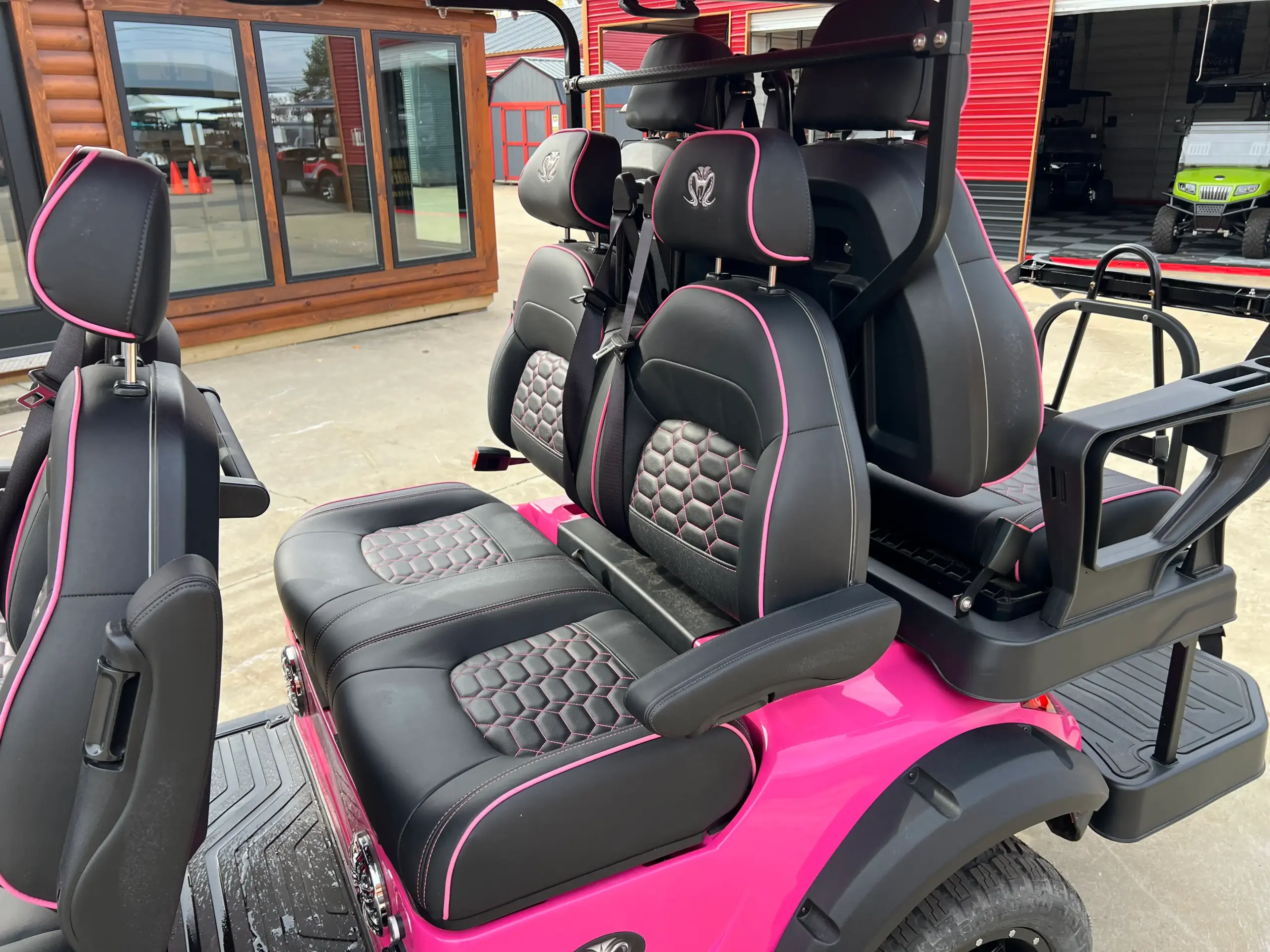 If you want a golf cart that combines comfort, style, and performance, the Venom Strike 6 golf cart for sale near you is a fantastic option. This model is available in a bold Super Pink, making it a real head-turner. At Hartville Golf Carts, we offer the lifted Venom Strike 6-Passenger cart, perfect for anyone who needs more room for friends, family, or guests.