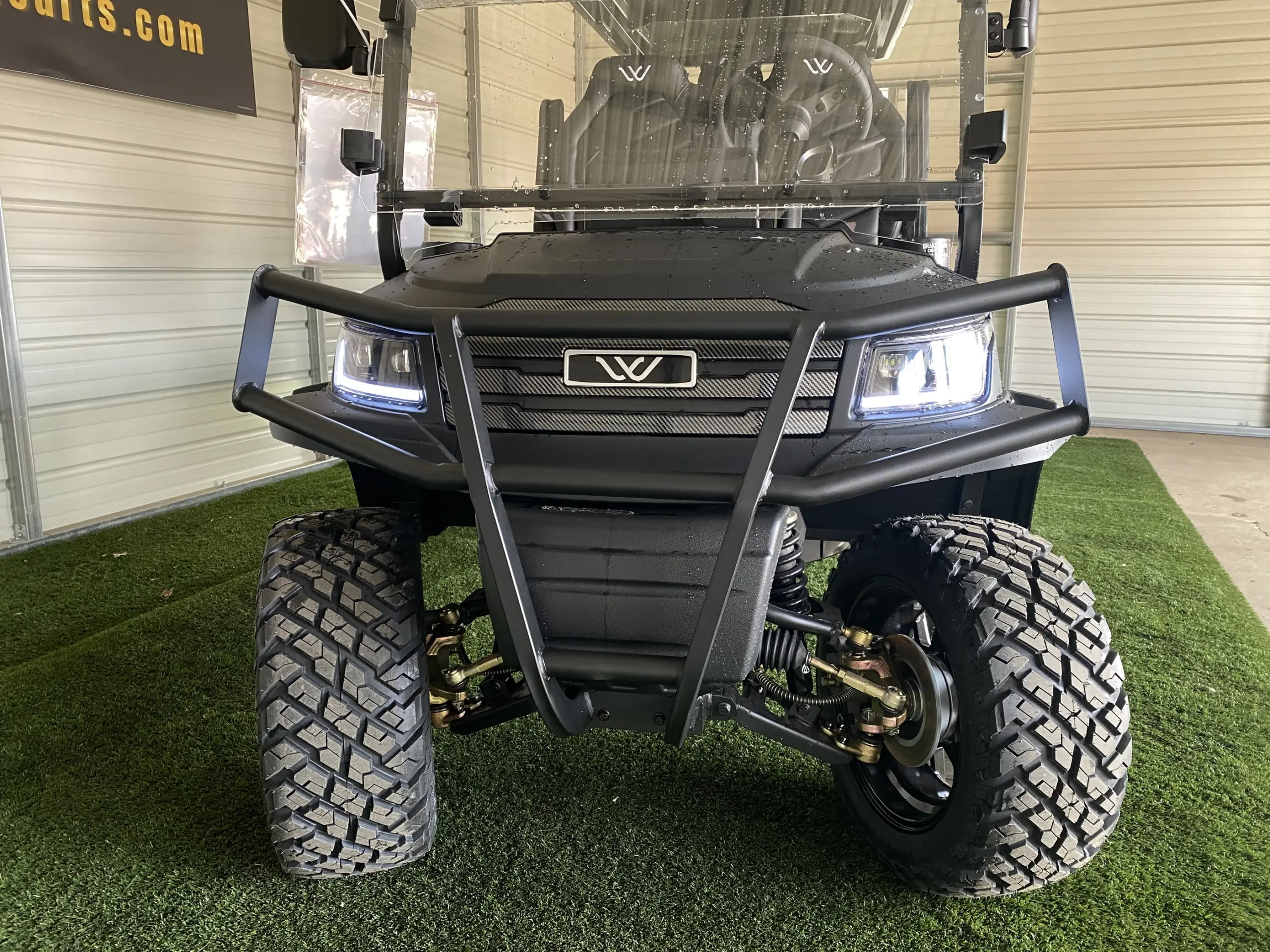 This lifted golf cart offers better ground clearance and a stronger road presence. It handles uneven surfaces with more confidence compared to standard carts. Because of this, it works well in neighborhoods, private properties, and light off-road paths. The lifted stance also adds to its bold and rugged look.