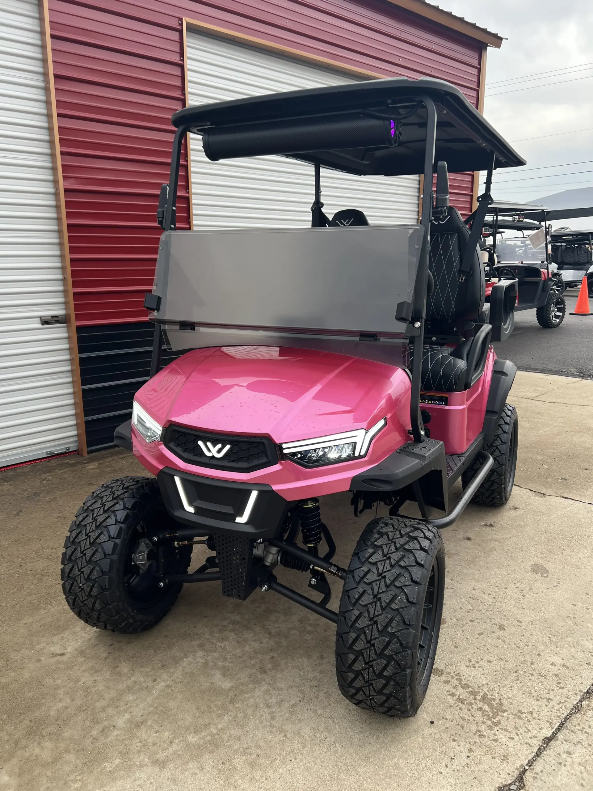 The Whisper EV Halo is a bold and modern golf cart built for smooth performance and everyday driving. This 2026 model comes in a striking Pink Metallic finish that instantly stands out. It pairs that color with Black seats for a clean and sharp contrast. The whisper ev halo delivers a lifted design, strong lithium power, and a balanced ride that fits both style and function without overcomplicating things.