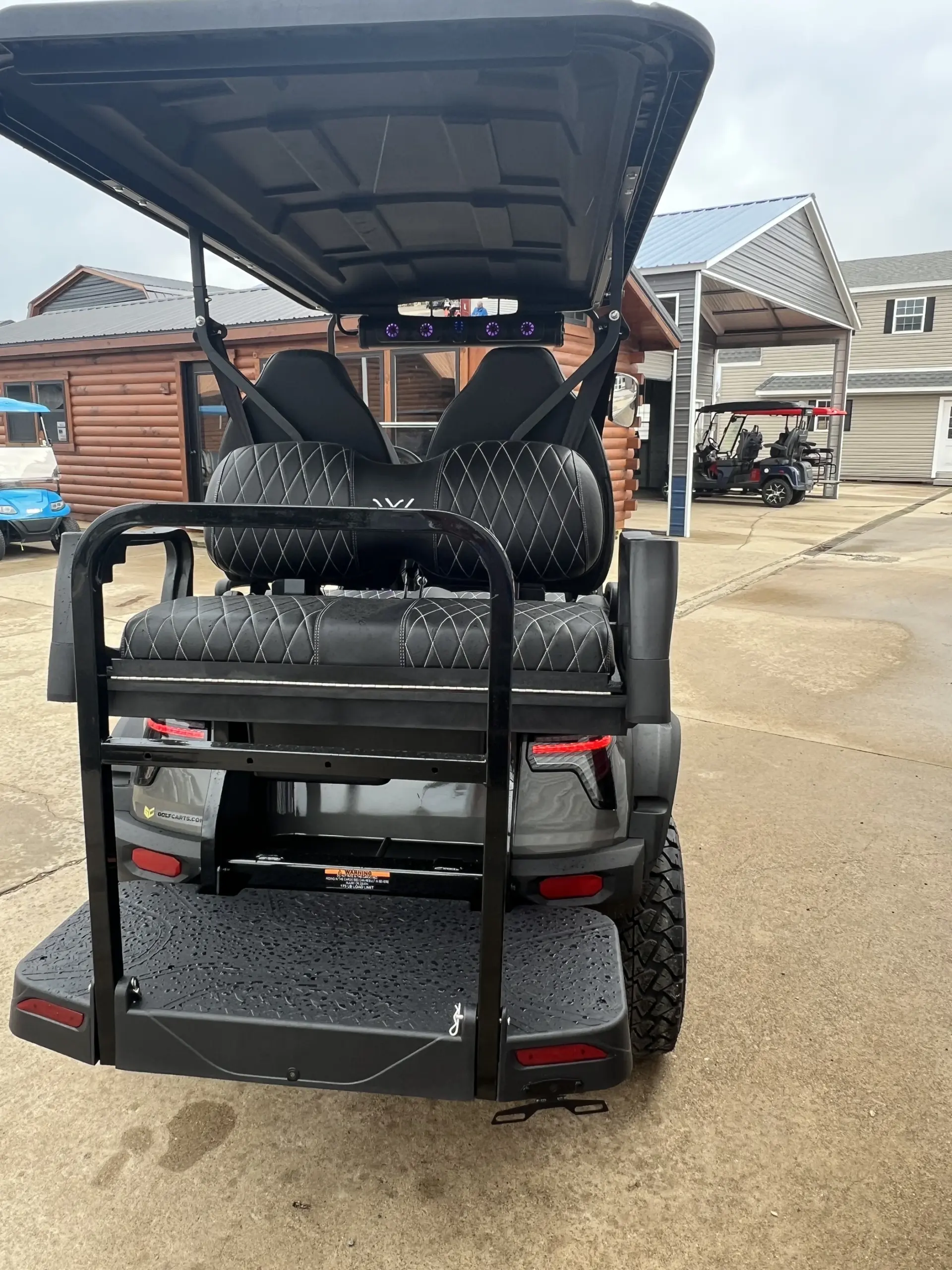 This lifted golf cart offers better ground clearance and improved control on uneven surfaces. It feels stable on different paths, whether you are on pavement or light off-road terrain. Because of this, it works well in neighborhoods, private roads, and larger properties. The lifted design also adds to its strong and confident look.