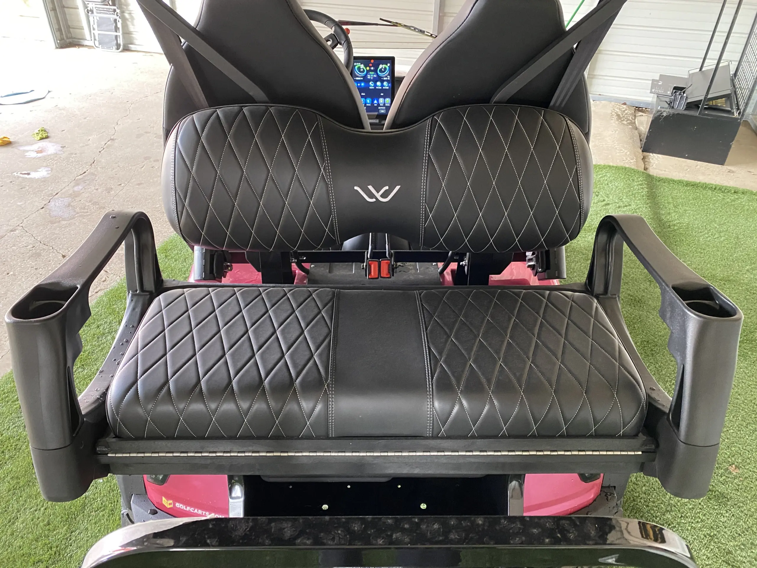 The Whisper Halo is a bold and eye-catching golf cart built for performance and everyday driving. This 2026 model comes in a striking Pink Metallic finish that stands out instantly. It pairs that unique color with Black seats for a clean and modern contrast. Built with a lifted frame and strong lithium power, it delivers both style and capability in one well-balanced design.
