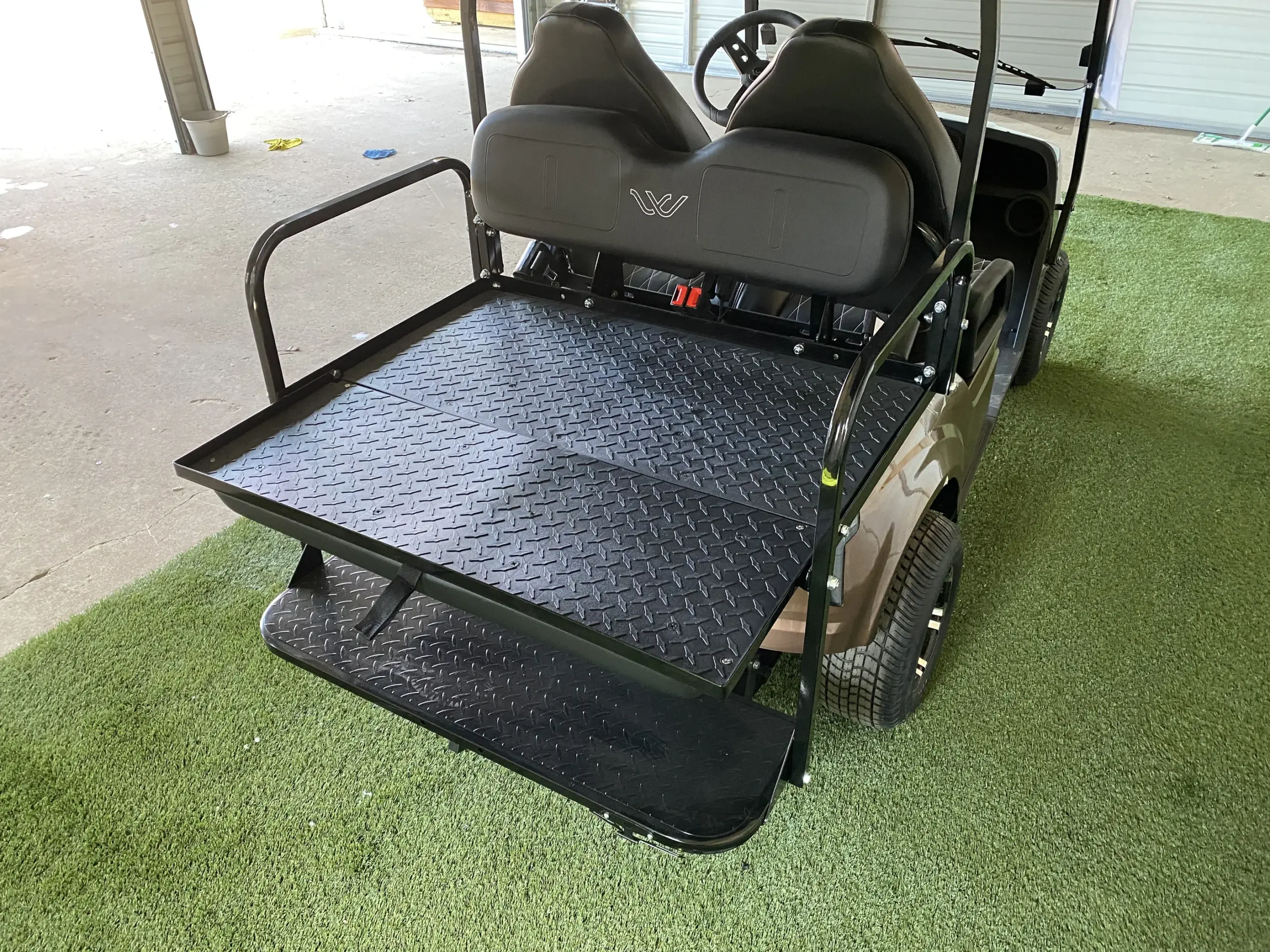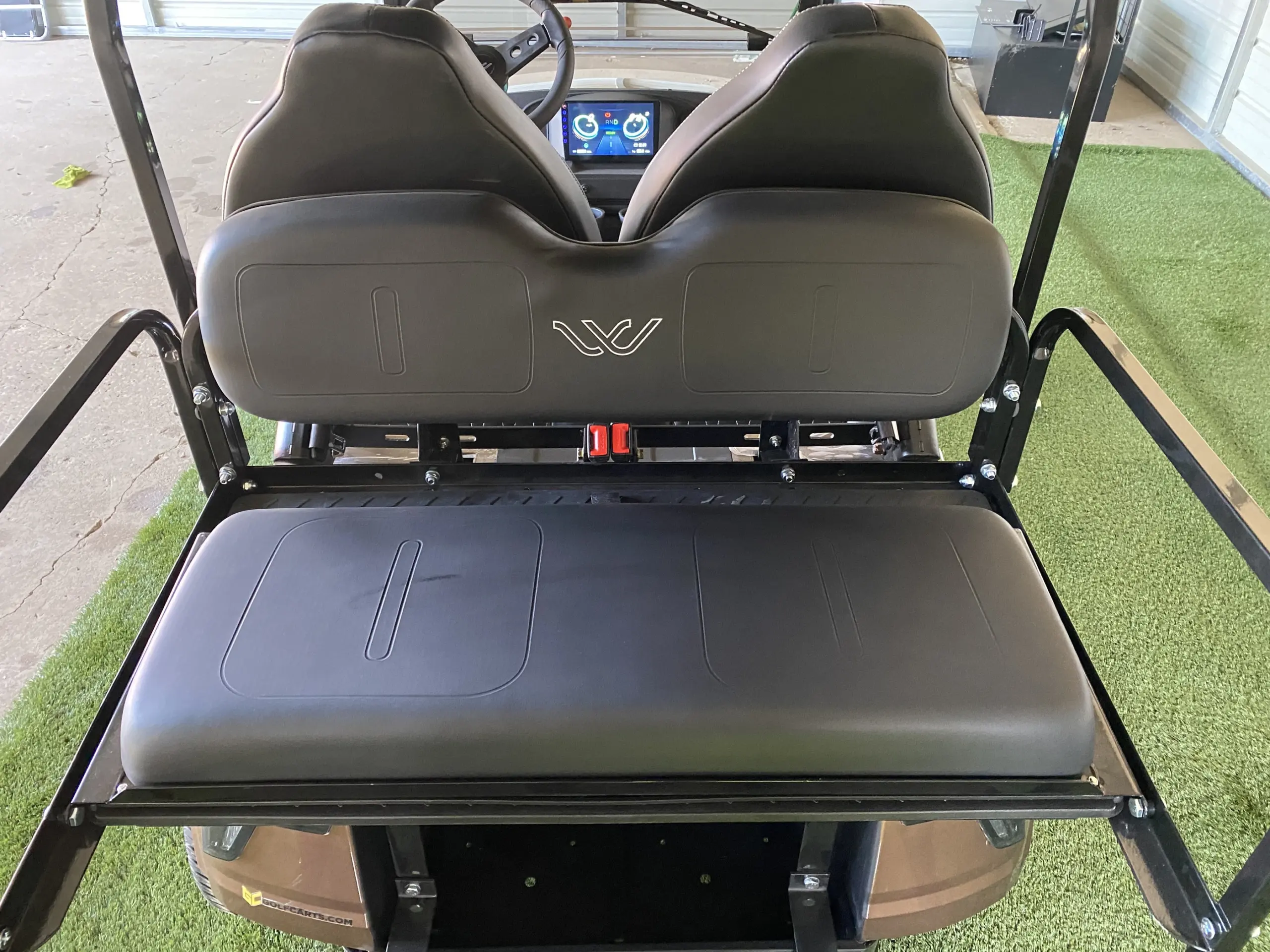 The lifted design plays a major role in how the Whisper W3 performs across different environments. It gives the cart better ground clearance, which helps when driving over rough or uneven terrain. At the same time, the suspension and frame keep the ride steady, so it does not feel unstable or difficult to control. This balance makes it useful for both casual daily driving and more varied conditions where a standard cart may struggle. The Bronze Metallic finish adds to the overall presence, giving it a strong look that reflects its capability while still maintaining a clean and polished appearance that fits well in residential settings.
