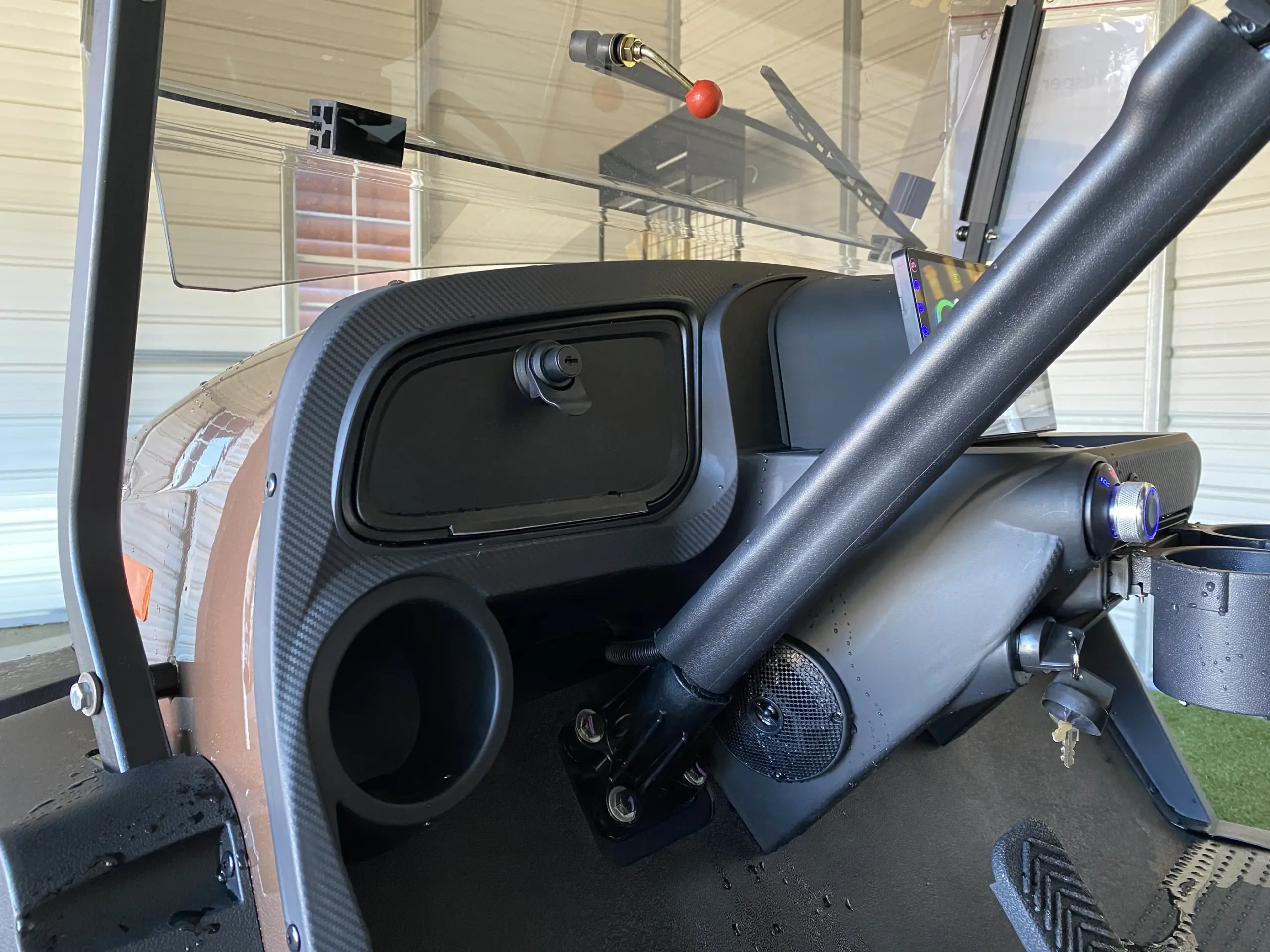 The Whisper W5 golf cart is designed to carry four people while keeping a stable and practical layout. The seating feels supportive and spacious, so passengers can ride comfortably during both short and longer trips. The Black seats pair well with the Bronze Metallic body, creating a clean and modern look that feels well put together.